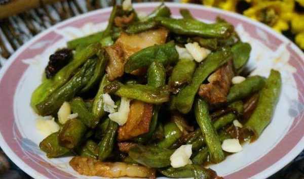 傢常豆角:1、豆角擇好洗凈,掰成小段。2.五花肉切片,蔥薑切好備用。3. 鍋中放適量油,油熱放入八角和薑片煸香。4. 倒入老抽,煸炒勻,加入熱水。小火燉10分鐘。5. 倒入豆角,繼續小火燉,直至豆角變色稍軟,翻炒勻,收汁,出鍋。7.出鍋時可以加些蒜末提香,也有人喜歡不放,吃的時候搭配生蒜吃,更香。