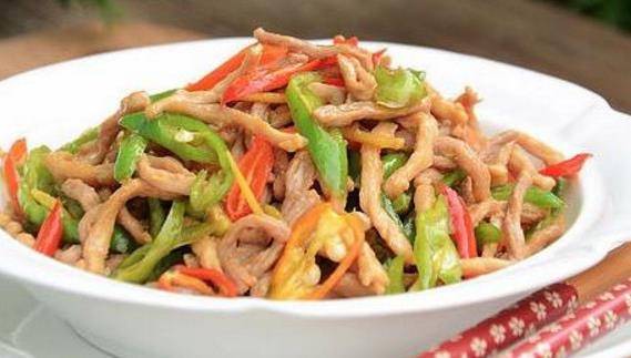 青椒肉絲:1. 瘦肉切成細絲。青椒切成片,生薑切絲、蒜瓣切末,紅椒斜刀切成片。2. 把肉絲放入碗中加調料攪拌。3. 鍋燒熱倒油,倒入肉絲。4. 用筷子均勻的撥散,肉絲會逐一分開,而且不粘鍋,炒約半分鐘至肉絲變色。5. 把肉絲移動到鍋的一邊,把油留在鍋底,下入薑絲和蒜瓣煸香,接著下入青紅椒,翻炒至青紅椒斷生,再用鍋鏟把肉絲蓋過來混合。6. 調入1湯勺的生抽、1/2茶勺和幾滴香醋,翻炒均勻即可出鍋。