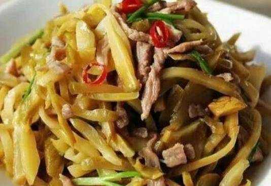榨菜肉絲:1、將豬肉切成絲,小蔥切成寸段。2、豬肉加上醬油和水淀粉拌勻。3、鍋燒熱加油,放入豬肉絲炒散,至表面發白。4、加入薑絲和花椒炒香。5、加入榨菜翻炒。6、加入蔥段翻炒均勻即可。