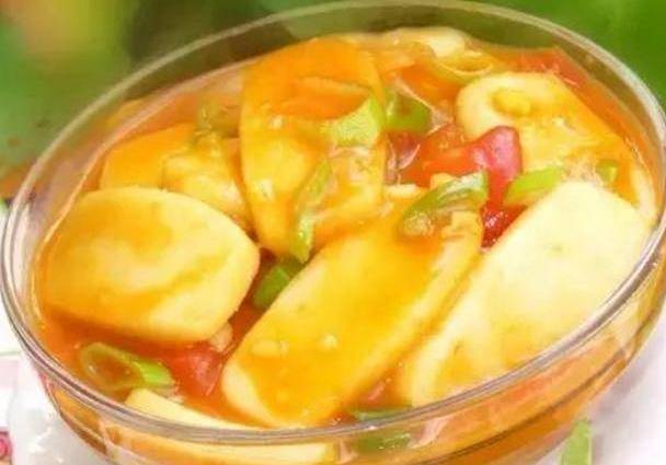 番茄炒年糕:1、番茄1~2隻,年糕、番茄醬少許;2、先煮開一鍋水,把年糕稍微焯一下至軟身即可(也可以煎熟);3、番茄切小塊,熱鍋下油,把番茄炒一下;4、加入番茄醬繼續炒;5、加入年糕,炒勻;6、加一點點鹽和醬油調味,番茄醬本身有咸味的,所以其他調味品不要放太多如果你想吃酸甜口味的,還可以加一小勺白糖。