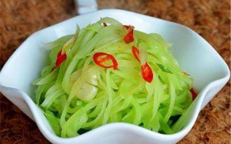 清炒萵筍絲 :萵筍去皮切絲加少許鹽醃制15分鐘,蒜瓣切片,蔥切絲,蒜瓣切片,蔥切絲,醃制過的萵筍擠出水分瀝幹,炒鍋倒油放入蒜蔥爆香。倒入萵筍翻炒,加入鹽,糖繼續翻炒片刻,最後淋入少許米醋,加少許雞精,翻炒均勻即可!