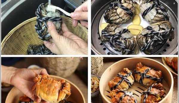 2、蒸鍋中倒水,放入蔥結、薑和少量啤酒,最好放幾片紫蘇放入蟹蒸制15-20分鐘