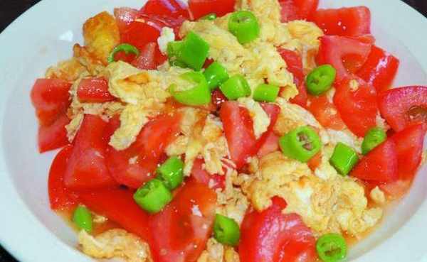 西紅柿炒蛋:300克番茄切塊,兩個雞蛋打散,小蔥切碎;坐鍋放油燒熱,倒入雞蛋,大火快速滑炒後裝起;用餘油開始炒番茄;要一直炒至出湯,出湯後再加小半碗水進去;等到湯汁漸濃之後把雞蛋和蔥花倒進去,炒勻,放少許白糖及鹽調味即可。