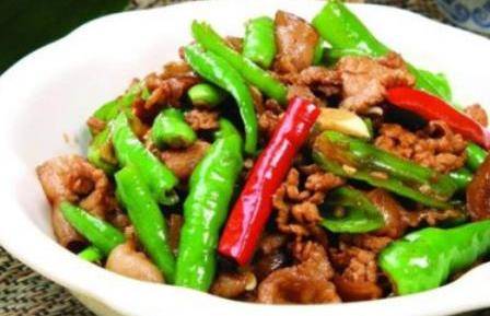 辣椒炒肉:瘦肉切片用鹽、醬油稍微入味。辣椒切片,蒜子拍松。爆香肥肉和蒜子,炒瘦肉、辣椒等調味即可。