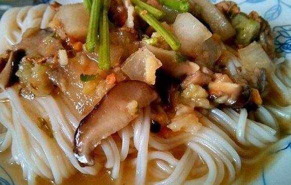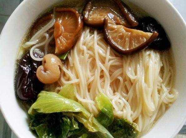 所需食材:香菇,雞脯肉,掛面,蒜,香蔥,油,料酒,淀粉。