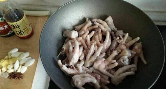 所需食材:雞爪,花椒,八角,桂皮,香葉,冰糖,料酒,老抽,生抽,十三香,薑。