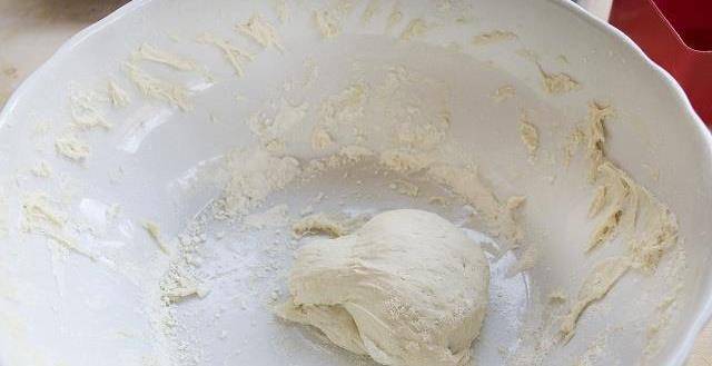 然後接著將糯米粉倒入到一個洗幹凈的大碗中,然後倒入適量的涼水開始和面,將糯米粉和成絮狀再揉成面團放一邊醒目十分鐘。