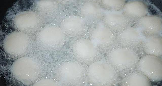 在等待醒面的時候先準備一口洗幹凈的鍋,往鍋中倒入半鍋清水用大火把水燒開備用!到時間後取出面團!然後把大的面團揉成小圓團!等鍋中的水煮沸之後將剛剛揉好的小糯米圓團放入鍋中大火煮,直到小糯米團子漂浮起來即可!
