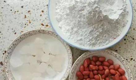 材料:糯米粉200g、冰糖50g、花生米30g
