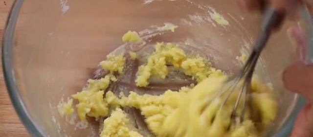 在碗裡倒入90克的食用油,60克的白糖,把它們攪拌均勻,加上一個蛋黃,再次攪拌均勻。讓他們充分混合,最後倒入130克的低筋面粉,再次攪拌均勻,不要順著一個方向攪拌,以免面糊起筋做出來就不疏松瞭。