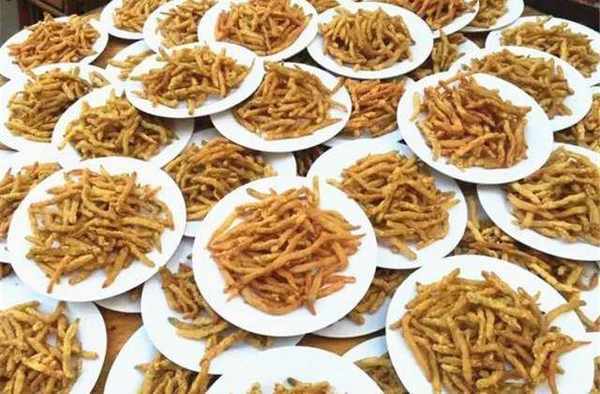 在北海酒席上,會把一條條沙蟲慢慢用油煎成金黃色,或是裹蛋清炸,非常受歡迎,即使喉頭冒火也要把它幹光。這道菜一上桌,基本一分鐘內秒完,下手慢點就隻能看著別人吃瞭。