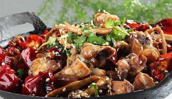 這道菜用的是肥肉多一點瘦肉少一點的五花肉和比較正宗的三黃雞,做出來的菜特別咸鮮可口,還帶著一股辣味。