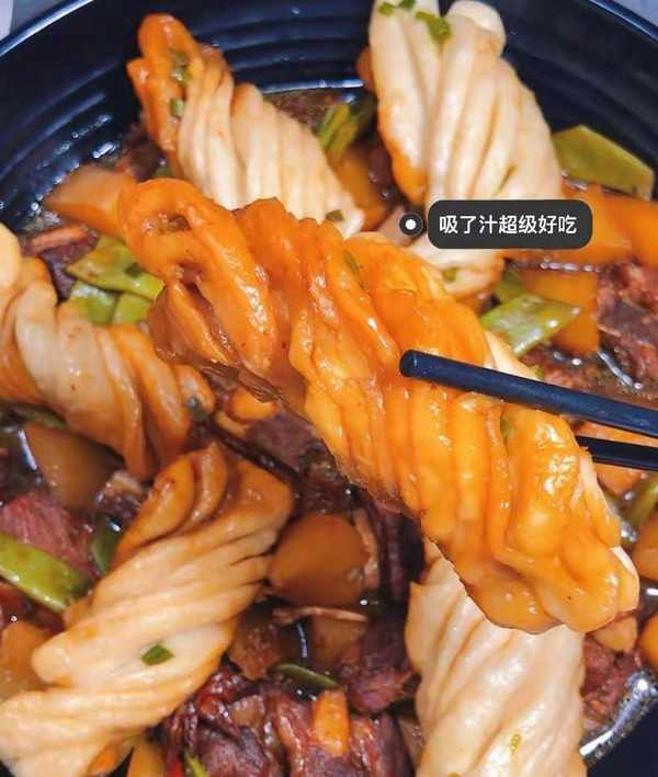 東北菜排骨燉豆角配燜卷子也太好吃瞭,吃過一次後流連忘返,簡直停不下來。