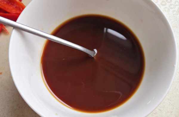 6.再來調一下醬汁,把調味料都加到一個空碗裡攪拌均勻,加入少許淀粉拌勻,