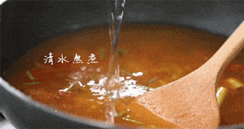 7、倒入清水熬煮出滋味後撈出殘渣。將湯汁盛出。