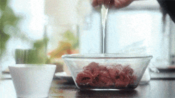 8、在牛肉片裡面加鹽、料酒、蛋清、淀粉抓勻。