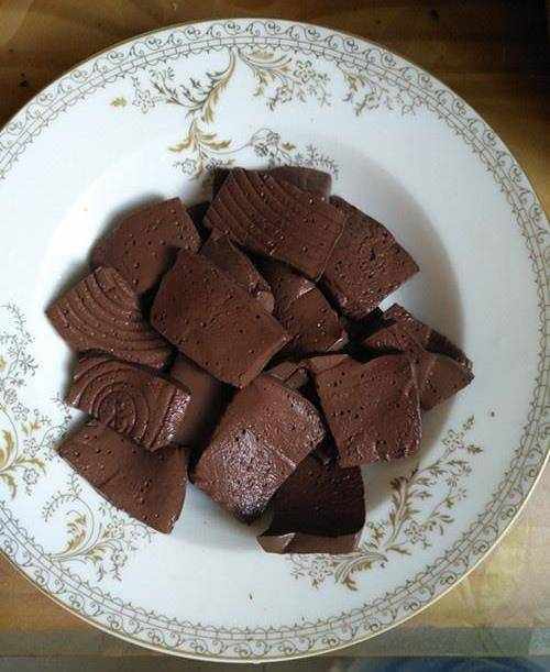 5.放入羊血,大火爆炒幾下,烹入少許香醋、鹽、蠔油,迅速翻炒均勻,出鍋裝盤,上面撒上一點香菜。美味的炒羊血新鮮出爐啦