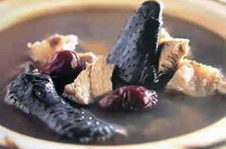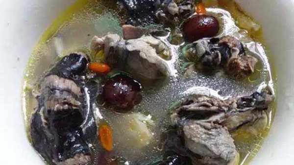 做法:洗凈烏雞,去內臟,與藥及調料共放入砂鍋,加水適量,燉至肉爛。