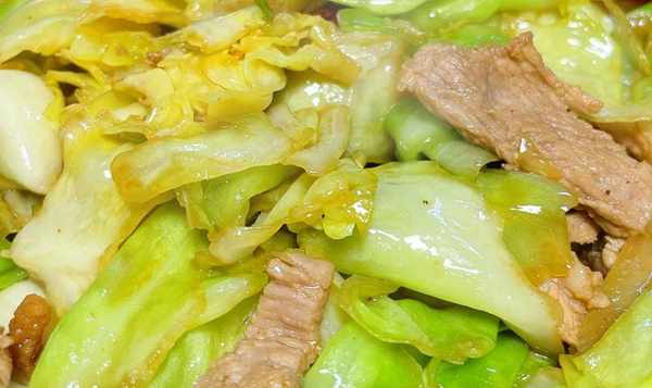 3、一定要把肥肉的油炸出來,這樣會使包菜的味道更佳哦 。