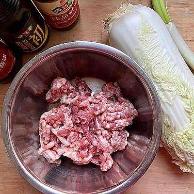 3.將卷心菜和蔥花切碎,加入肉餡中(餃子餡,我傢喜歡一些果汁,但卷心菜沒有水)。加入一勺鹽和一勺十三香。