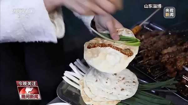 關於淄博燒烤,流行著這樣的說法:“小餅烤爐加蘸料,靈魂燒烤三件套。”如果說小爐代表溫度,小餅代表包容,那麼白莖綠葉的小蔥代表淄博人的豪爽好客。