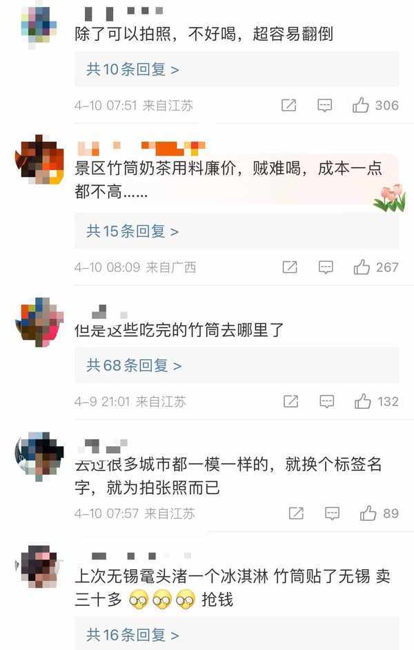 在社交平臺上,和李女士有相同感受的人不占少數,“不好喝,除瞭可以拍照”“整個長三角,市區到縣城都是貼地名的竹筒奶茶”“味道著實一般,價格還很貴”;也有網友稱“創意不錯”“看起來不錯”“應該比塑料杯好”。