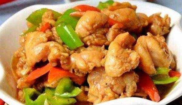 材料:雞腿3個、青椒1個、紅椒1個。色拉油適量、香油30毫升、鹽適量、醬油30毫升、白糖3克、料酒15毫升、雞精適量。