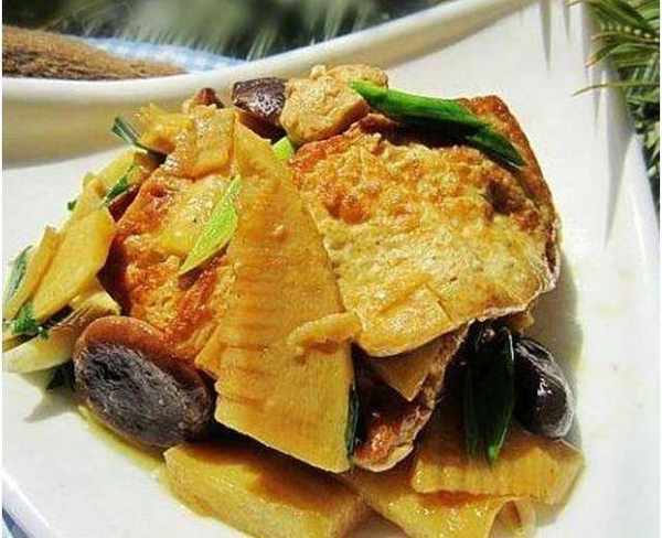 材料:竹筍300g 豆腐200g 香菇50g 油適量 鹽適量 薑適量 糖2g 味精適量 香油適量 水淀粉適量