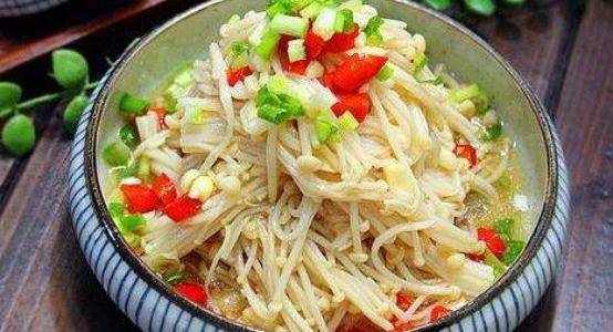 4.鍋內放水。燒開後將金針菇放入焯水一分鐘
