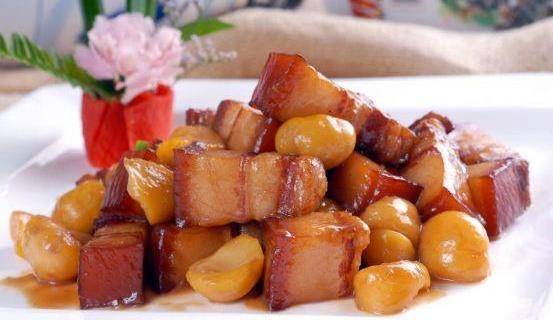 10.加入栗子和適量的鹽,轉中火燉煮,最後收汁