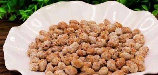 1.洗好的花生粒,倒入淀粉,打入雞蛋液(可以按照自己的口味加),糖攪勻