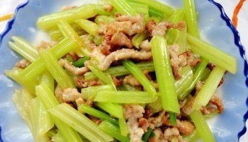 4.芹菜切段,豬肉和胡蘿卜切絲,蔥切末。