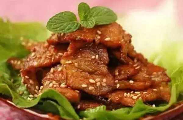 材料:五花肉250克、鹽3克、醬油少許、薑3克、蒜3瓣、蠔油、香油3毫升、洋蔥、白糖、蜂蜜、胡椒粉2克、芝麻5克、雪梨1個