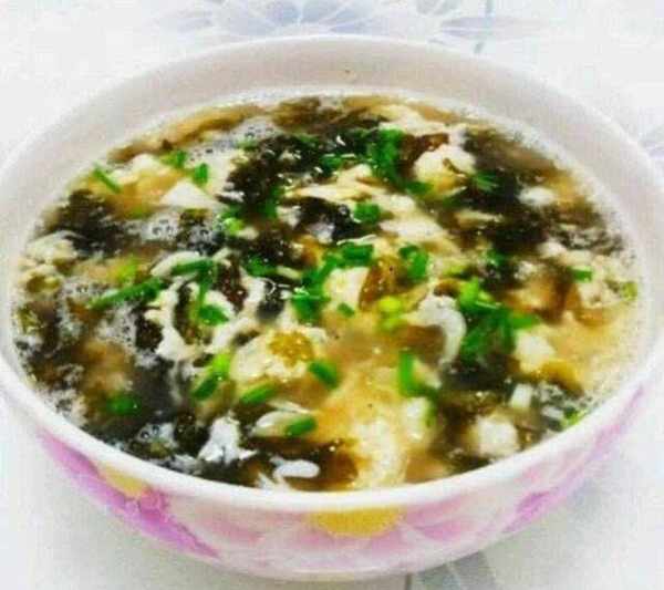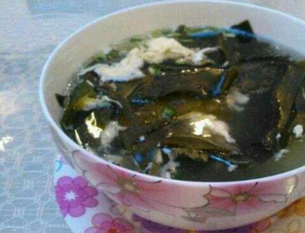 1,紫菜雞蛋湯。材料:紫菜,雞蛋,生薑,雞精,鹽,油,小蔥。做法:紫菜用手撕碎,生薑切成薑絲,小蔥切炒,鍋裡放入水把紫菜放到鍋裡,加入薑絲水燒開,轉小火煮至5分鐘左右,調味放雞精,鹽,油,碗裡打入雞蛋攪拌均勻,鍋裡開大火邊倒雞蛋到鍋裡邊攪拌,最後放入蔥花就可以出鍋瞭。