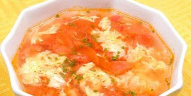 2,番茄雞蛋湯。材料:番茄,雞蛋,生薑,小蔥,鹽,油,雞精,做法:番茄切成片,生薑切薑絲,小蔥切成蔥花,鍋裡放入水,打入番茄,薑絲大火燒開,轉小火燒至番茄軟爛,調味放雞精,鹽,油,雞蛋打到碗裡攪拌均勻,開大火邊倒雞蛋到鍋裡邊攪拌,最後放入炒即可出鍋。