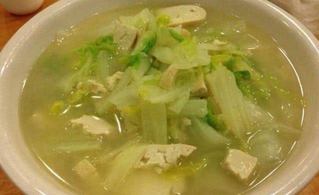 3,白菜豆腐湯。材料:大白菜,豆腐,生薑,油,鹽,雞精,小蔥。做法:大白菜切成小塊,豆腐切小塊,生薑切成薑絲,小蔥切成蔥花,鍋裡放入,加入大白菜,薑絲,豆腐大火燒開,小火煮至10分鐘左右,調味放雞精,鹽,油,蔥花攪拌均勻就可以出鍋瞭。