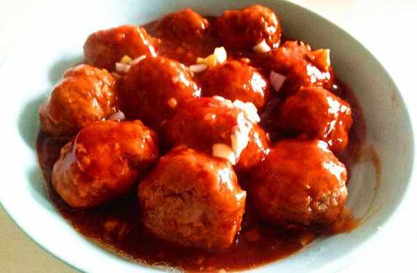 鍋內加油,放入蒜末爆香,加入清水,再加入適量的番茄醬熬制一會,加入少許鹽、糖、略煮以後,倒入蒸好的肉丸,加入適量水淀粉,待湯汁粘稠以後,撒上蔥花即可出鍋。