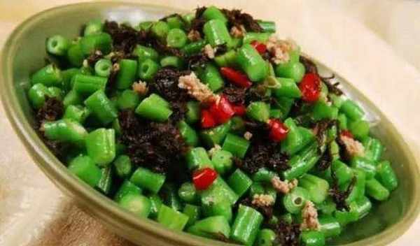 菜辣椒四季豆:1。倒入少許酒倒入肉中攪拌。2。四季豆替代去筋,洗凈,切成小。3.鍋入油,大火加熱至7成熱,炒四季豆,盛。4。然後把油倒進鍋裡。洋蔥末和蒜末爆香後,放入肉餡,炒至免。5。將留出的四季豆倒進鍋裡,加菜,醬油,鹽,糖,辣椒,炒2分鐘,出鍋前可以轉移到一個小的雞。