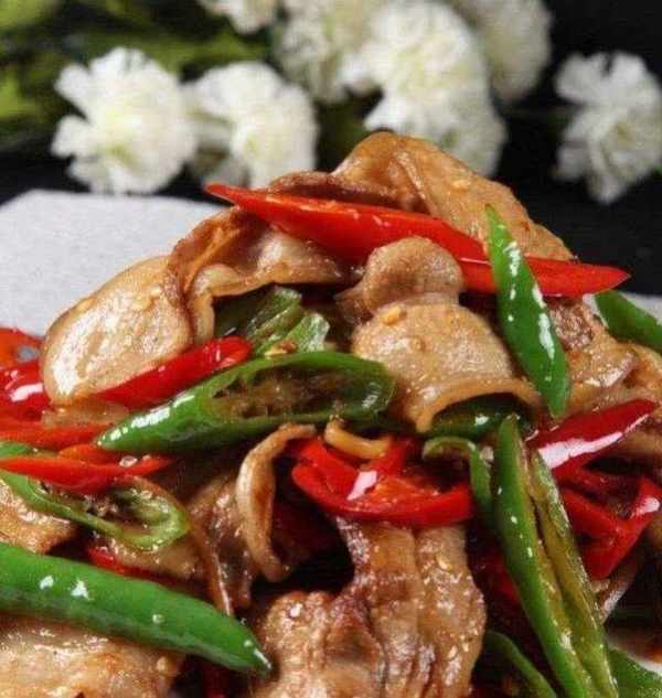 材料:五花肉,指天椒,尖椒,油,鹽,蒜,料酒,生抽。