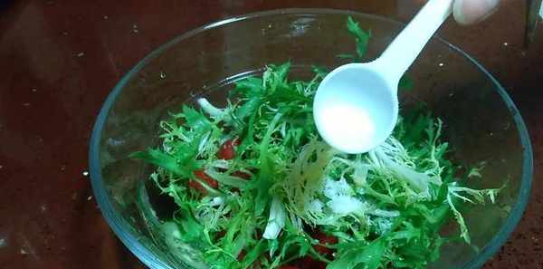 1清洗蔬菜方法,水龍頭下沖洗幾遍,然後放入清水中加入少許鹽浸泡3-5分鐘,再次沖洗幹凈