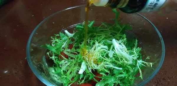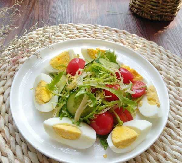 雞蛋2個,聖女果15個,黃瓜半根,苦菊 適量