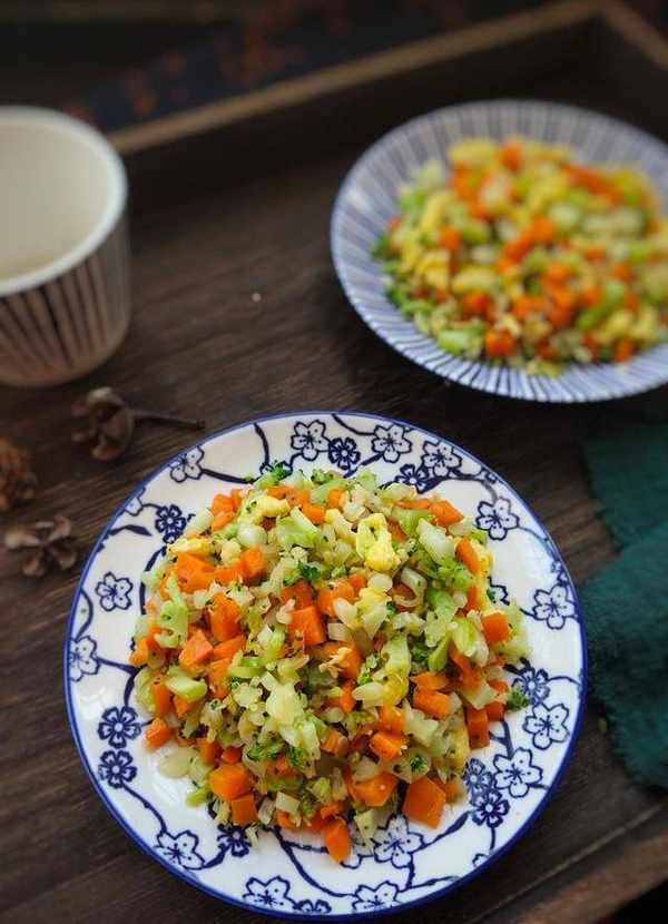 【做法】1、西蘭花和花椰菜用淡鹽水浸泡10分鐘,沖洗幹凈,焯水後分別切成小丁備用;胡蘿卜也切成丁。2、雞蛋用少許植物油煎熟鏟出。3、炒鍋中重新放油,先炒香蒜末,接著倒入把處理好的三種食材都倒進去。4、加入適量食鹽、十三香、味極鮮調味。5、然後倒入雞蛋碎,再加入少許雞精翻炒均勻就鍋。