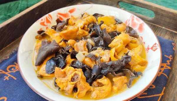 【食材】雞腿,黑木耳,蔥,蒜,薑,花椒,八角,食鹽、生抽、老抽、蠔油、香油適量。
