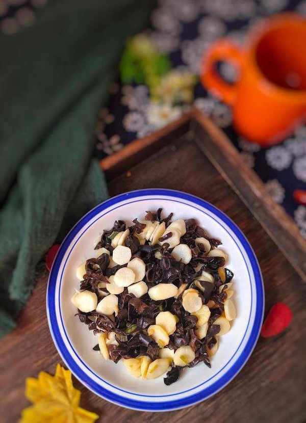 【食材】黑木耳、山藥,小蔥,油、食鹽、生抽適量。