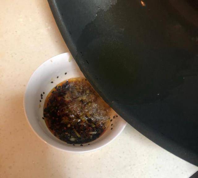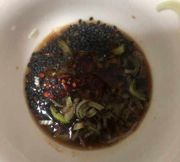 第3步、碗內加入蔥花,黑芝麻,醬油,醋,鹽,雞精,白砂糖,十三香,辣子油,香油。