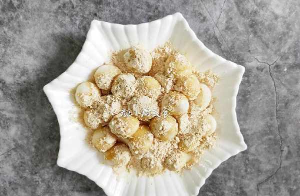 【湯圓】這個湯圓的做法特別好吃,把煮好的湯圓裹上炒香的黃豆粉,口感軟糯香濃,也傢人最喜歡的,一大盤三兩下就吃完瞭。