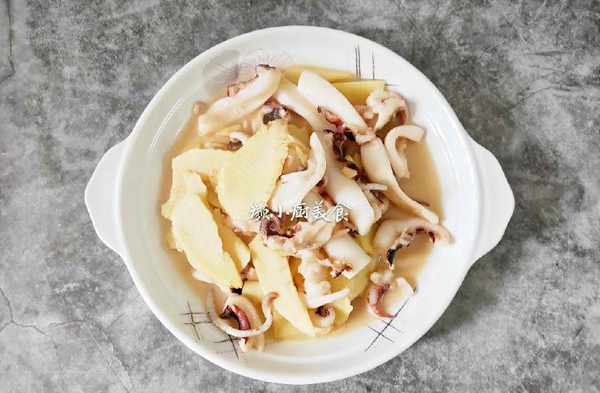 【冬筍炒墨魚】新鮮冬筍配上新鮮墨魚一起炒,爽脆清甜,特別好吃。