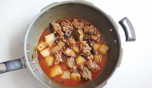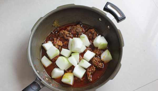 12.壓力鍋排氣後,打開鍋蓋,放入冬瓜塊。