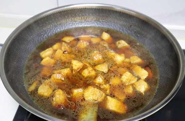 9、撈出,放涼,切成小塊備用。