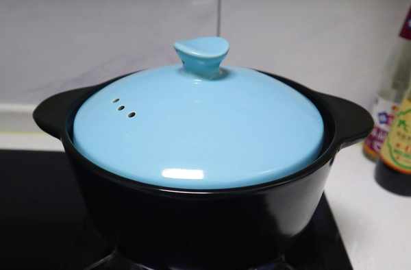 7、水開後,連湯帶肉轉移到砂鍋,加蓋,中小火慢燉40分鐘左右。